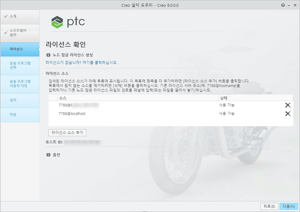 제가 사용하는 컴퓨터는 Creo 라이선스 서버이면서 클라이언트이기 때문에 install_license_server.exe를 먼저 실행합니다. 아래 그림처럼 라이선스 서버만 지정할 수 있으며, 지정하는 방법은 기존 버전과 동일합니다.