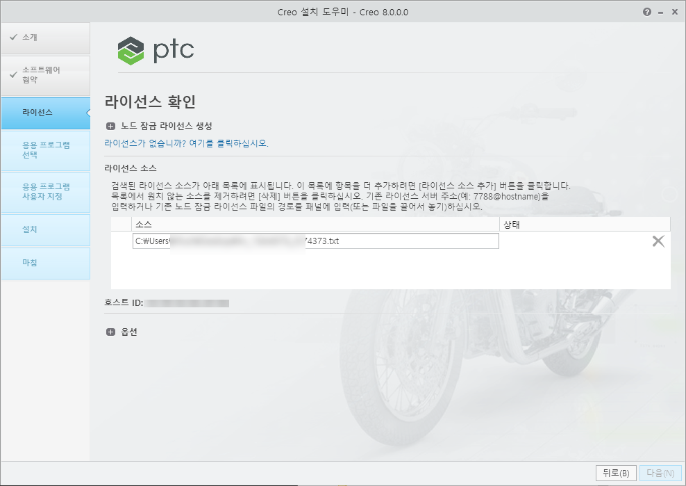 라이선스 파일을 읽어들입니다. Mac Address가 틀리지 않았다면 오류없이 진행합니다.