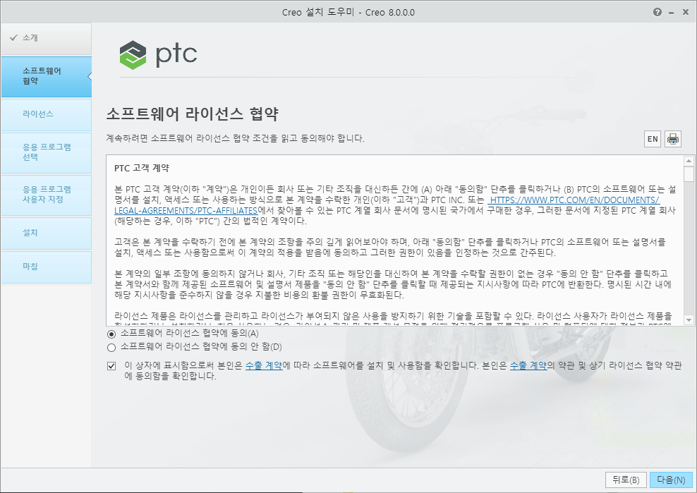 소프트웨어 라이선스 협약 페이지는 동의 후 진행합니다.