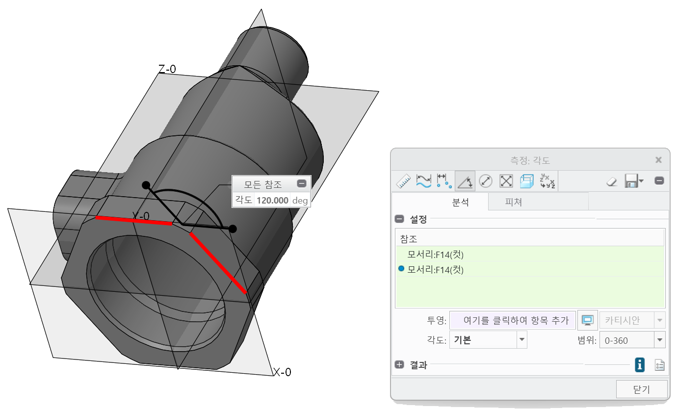 그 결과가 직선 모서리를 선택했을 때는 괜찮은데 평면 두 개를 선택했을 때 많이 혼동이 있는 것 같습니다.