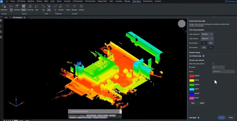 사용자는 스플라인 맞춤 폴리라인과 색상 매핑된 포인트 클라우드의 표시 성능이 현저하게 향상되었음을 알 수 있습니다.