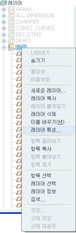 즉, Datum Plane만 자동으로 검색을 해서 datum 이란 레이어로 만들 수도 있고, surface 만 자동으로 검색을 해서 surface 레이어로 만들 수도 있습니다.