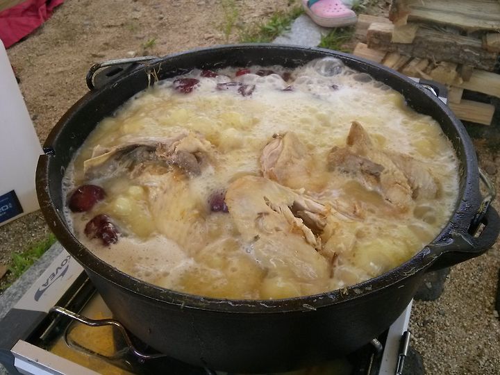 제가 집에서 요리를 하는 일은 거의 없었고 이것은 가족과 캠핑을 가서도 마찬가지였습니다. 보통 텐트나 타프 설치를 제가 하고 있으면 집사람이 음식 준비를 했었습니다. 그러다 우연히 알게된 더치오븐, 여기에 음식을 하면 그렇게 맛있다고들 하더군요. 대신 관리가 힙들다고.... 더치오븐은 메이커에 따라서 가격 차이가 많습니다. 어찌보면 작은 가마솥이라고 볼 수 있는데 가격은 ㅎㄷㄷ 합니다. 나름 고민을 하다 코스트코에서 저렴하게 나온 더치오븐을 하나 영입했습니다. 인터넷에 알려진대로 더치오븐에 밥, 찜, 통닭, 옻닭, 등갈비 등 어떤 음식을 해도 정말 맛나더군요. 그 전에는 사용하지 않다가 더치오븐과 같이 차콜도 사용을 하게 되었습니다.지금까지 더치오븐에 요리를 한 사진들 투척합니다.