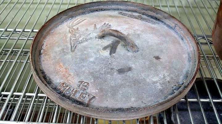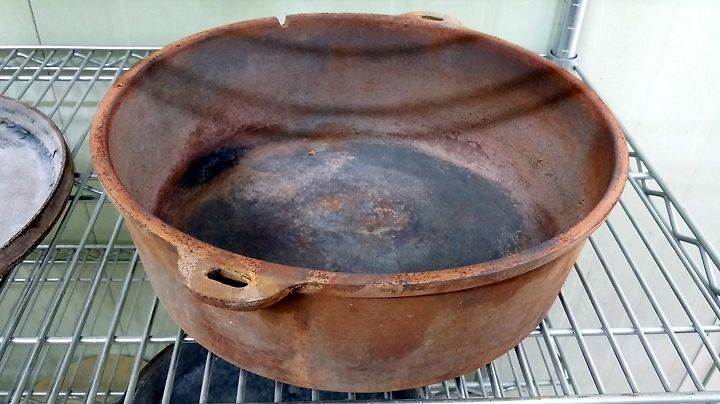 먼저 대형 오븐(?)에 넣고, 더치오븐의 표면을 완전히 태워버린 사진입니다. 결과를 보니 난리도 아니네요. 아무리 시즈닝을 정성들여서 해도 결국 저 상태였다는 것이니.....헐~