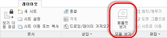 버전에 따라 아이콘의 모양이 조금씩 다를 수는 있지만 '레이아웃' / '모델 보기' / '템플릿 보기'가 추가됩니다.