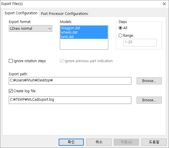 원하는 모델이 완성되었으면 File / Export를 눌러 LDraw 파일 형식으로 저장합니다.