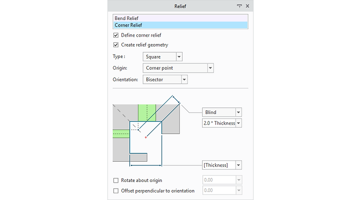 새로운 형식의 릴리이프(Relief)가 추가되었고, 드디어 동일한 두께가 아닌 모델도 sheetmetal로 변경할 수 있게 되었습니다.