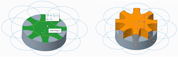 스케치에서 폐곡선들이 교차하는 경우에도 피처를 생성할 수 있습니다.
