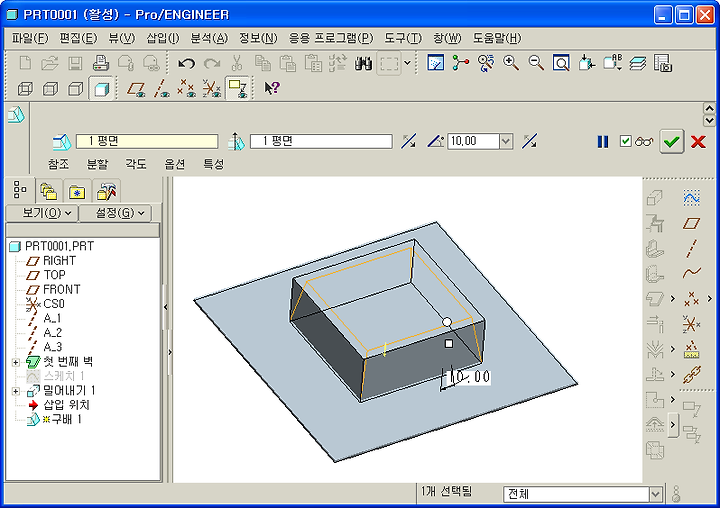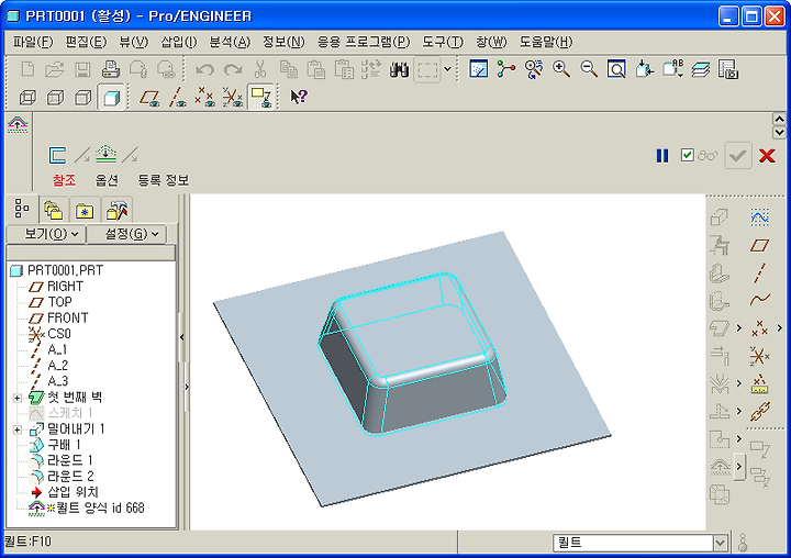 이 기능은 2년 전 S 사에서 사용중인 I-Deas(아이디어스)를 대체할 차세대 CAD를 선정할 때 Simense(지멘스)와 PTC의 Pro/ENGINEER 4.0이 벤치마킹(BMT)을 하게 되었습니다. UG와 BMT 도중 고객의 요구사항으로 WF4에 추가된 기능이며, 이 기능을 사용하기 위해서는 WF4 최신 버전과 Hidden config.pro를 사용하셔야 합니다. 먼저 config.pro 파일을 연 다음 수동으로 pnc_qlt_frm_ft 란 항목을 입력하고, 값을 yes로 설정합니다.