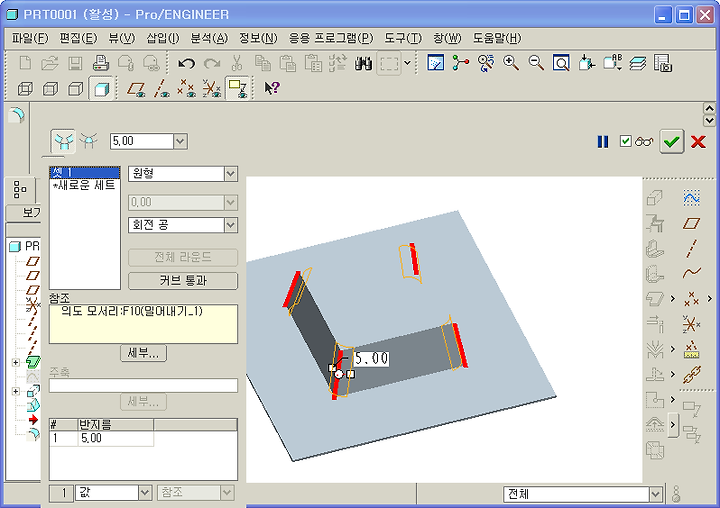 이로써 외부와 링크되지 않은 독립된 form 피처를 생성할 수 있는 방법 중 한 가지를 보여드렸으며, WF5에는 이 방법뿐만 아니라 더욱 쉬운 form feature 배치 방법이 제공되고 있습니다.